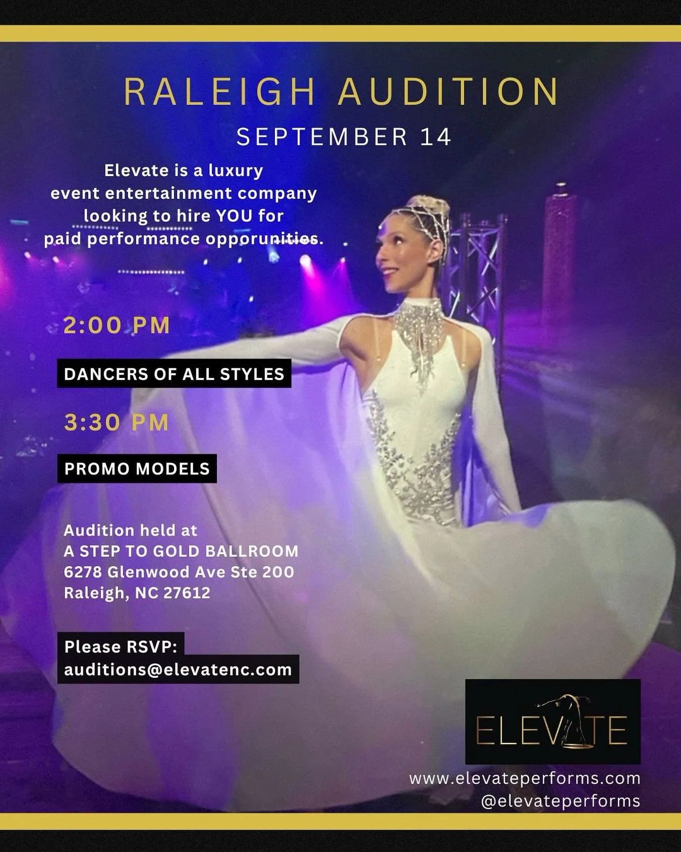 ELEVATE is a luxury event entertainment company serving Raleigh, Charlotte, Charleston, and destinations nationwide. We specialize in providing highly trained dancers, aerialists, models, musicians, and other cirque style immersive performers for weddings, corporate events, galas, and private parties. From champagne dresses and mirror men to stilt walkers, fire performers, and living tables, our custom entertainment leaves a lasting impression. Owner, Valerie Curran, has over 20 years of experience in performing, choreographing and directing.